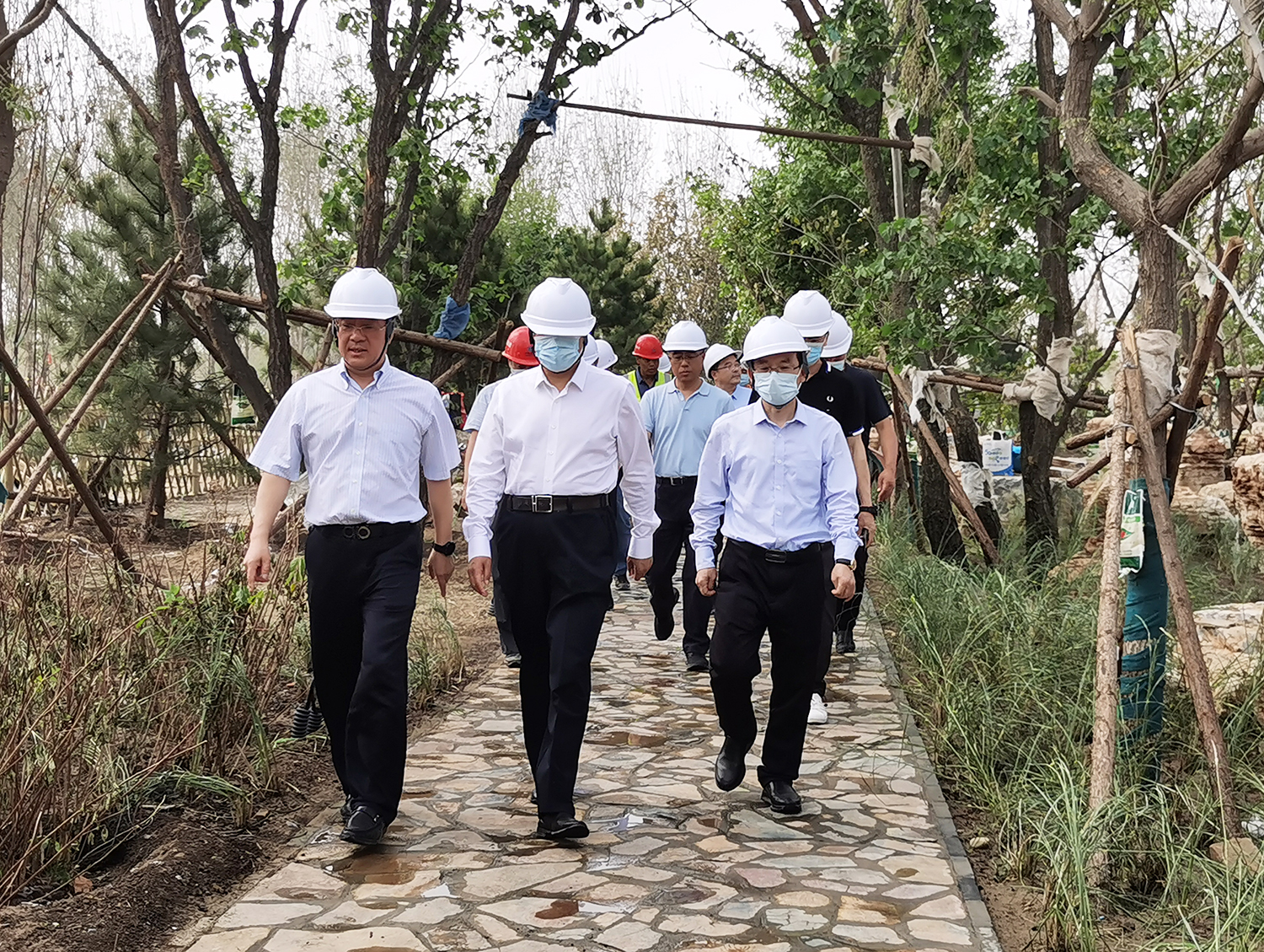 張建軍董事長向吳清海書記匯報(bào)了雄安郊野公園承德園的規(guī)劃設(shè)計(jì)、功能布局、工程建設(shè)等有關(guān)情況后,吳清海書記一行實(shí)地踏查了承德展園施工現(xiàn)場。