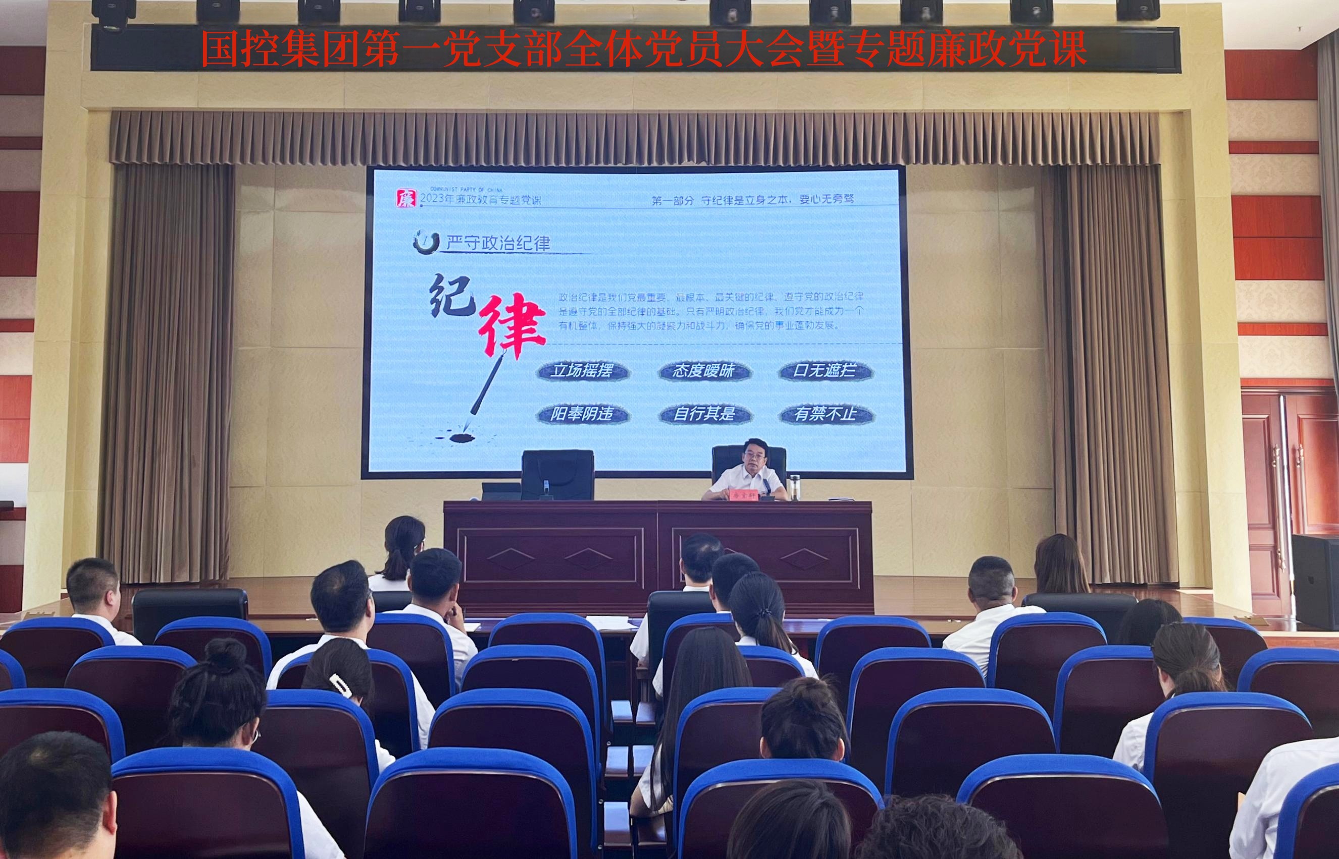 6月16日上午,國控集團第一黨支部召開全體黨員大會暨專題廉政黨課。集團公司黨委書記、董事長張建軍出席會議并作廉政黨課。黨委委員、紀委書記房寶軒主持會議并作廉政黨課,一支部全體黨員參加了會議。