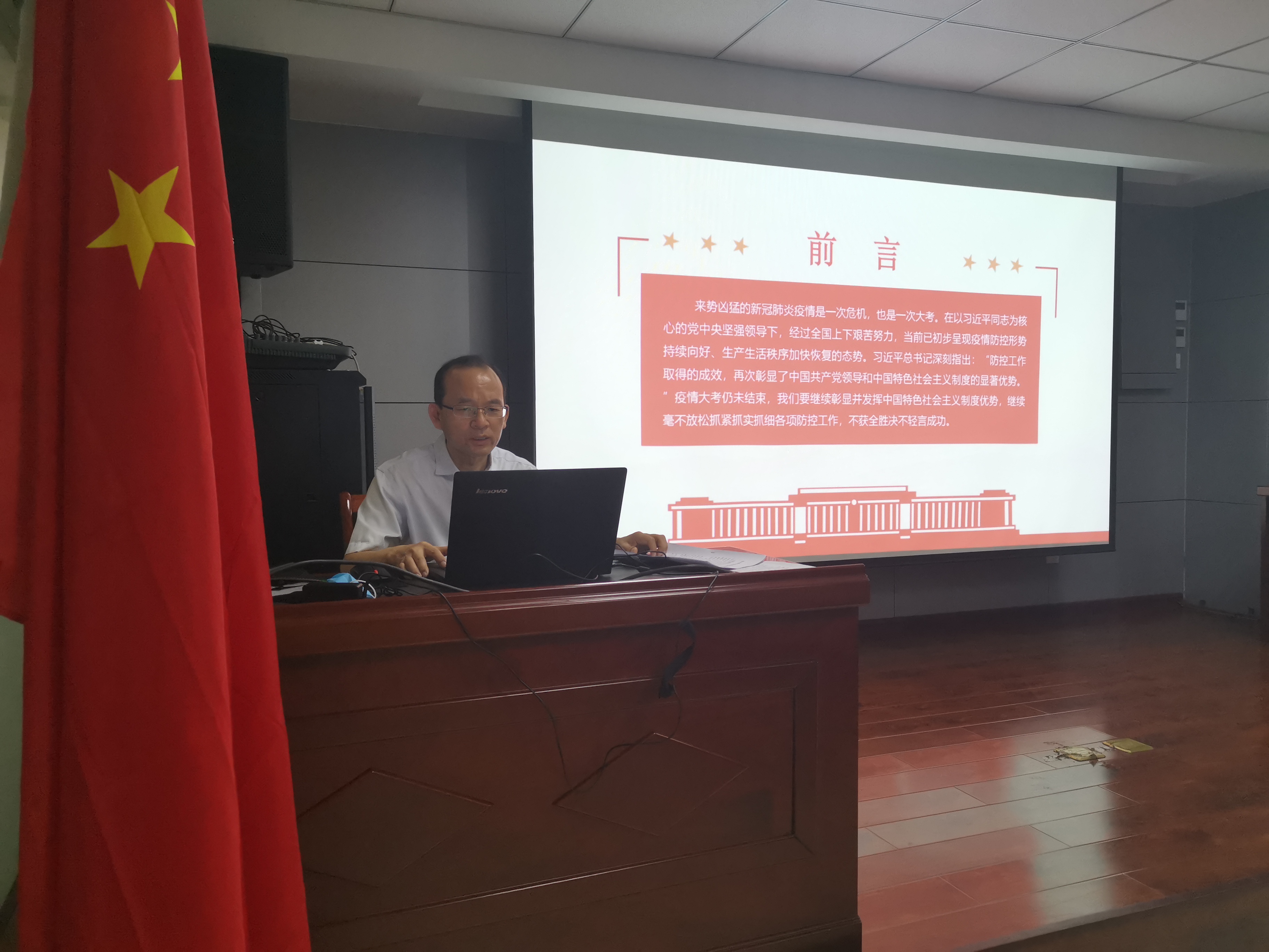 2020年7月2日上午,中共承德市國(guó)控投資集團(tuán)有限責(zé)任公司第二支部委員會(huì)支部書(shū)記焦俊良同志以“在大考中彰顯中國(guó)特色社會(huì)主義制度優(yōu)勢(shì)”為題,為全體支部黨員和入黨積極分子上了一堂別開(kāi)生面的黨課。