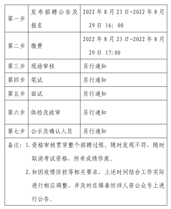 ?2022年8月23日-2022年8月29日 16:00在錦泰恒祥人資官網(wǎng)(www.jthxhr.com)、“錦泰恒祥人資”微信公眾號(hào)、“國(guó)控集團(tuán)”官方網(wǎng)站(m.2j9ig.com)及上級(jí)部門要求的相關(guān)網(wǎng)站等發(fā)布招聘公告。