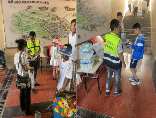 近日,受暖性高壓脊影響,我市迎來持續(xù)數(shù)天的高溫天氣,相關(guān)部門相繼發(fā)布了高溫橙色、紅色預(yù)警。市國動(dòng)辦、市國控集團(tuán)在避暑山莊門前地下人防停車場設(shè)置了“高溫天氣便民服務(wù)點(diǎn)”,為外地游客和本市市民免費(fèi)發(fā)放礦泉水和藿香正氣水,為出游的游客和市民提供飲水和預(yù)防中暑藥物,受到了廣大群眾的一致好評(píng)。